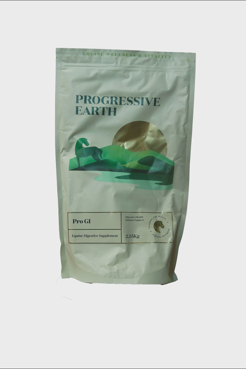 Pro G.I. equine feed supplement is available in resealable grip seal pouches containing 2.25 Kg of product.